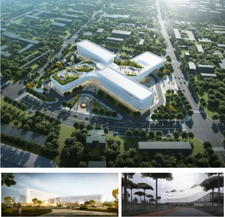 湖南省人民医院星沙院区项目充分尊重自然地形与地貌特征,结合西侧保留山体构建多层次山水城相融的空间系统。方案采用现代主义设计手法,巧妙融入中国园林元素,从山地形态中汲取灵感,整体灵动且富有场所精神,既凝练出 “山水医院”的核心概念,又塑造出“青山掩映、亦城亦景”的独特空间气质。