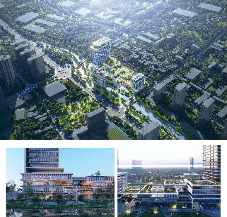 湾区芯城人民医院设计方案以“层峦叠翠・水润医康”为核心理念,立足场地周边多元的城市肌理,缝合传统尺度的居住街区与当代尺度的公共空间,塑造出开放通透的城市视线通廊。